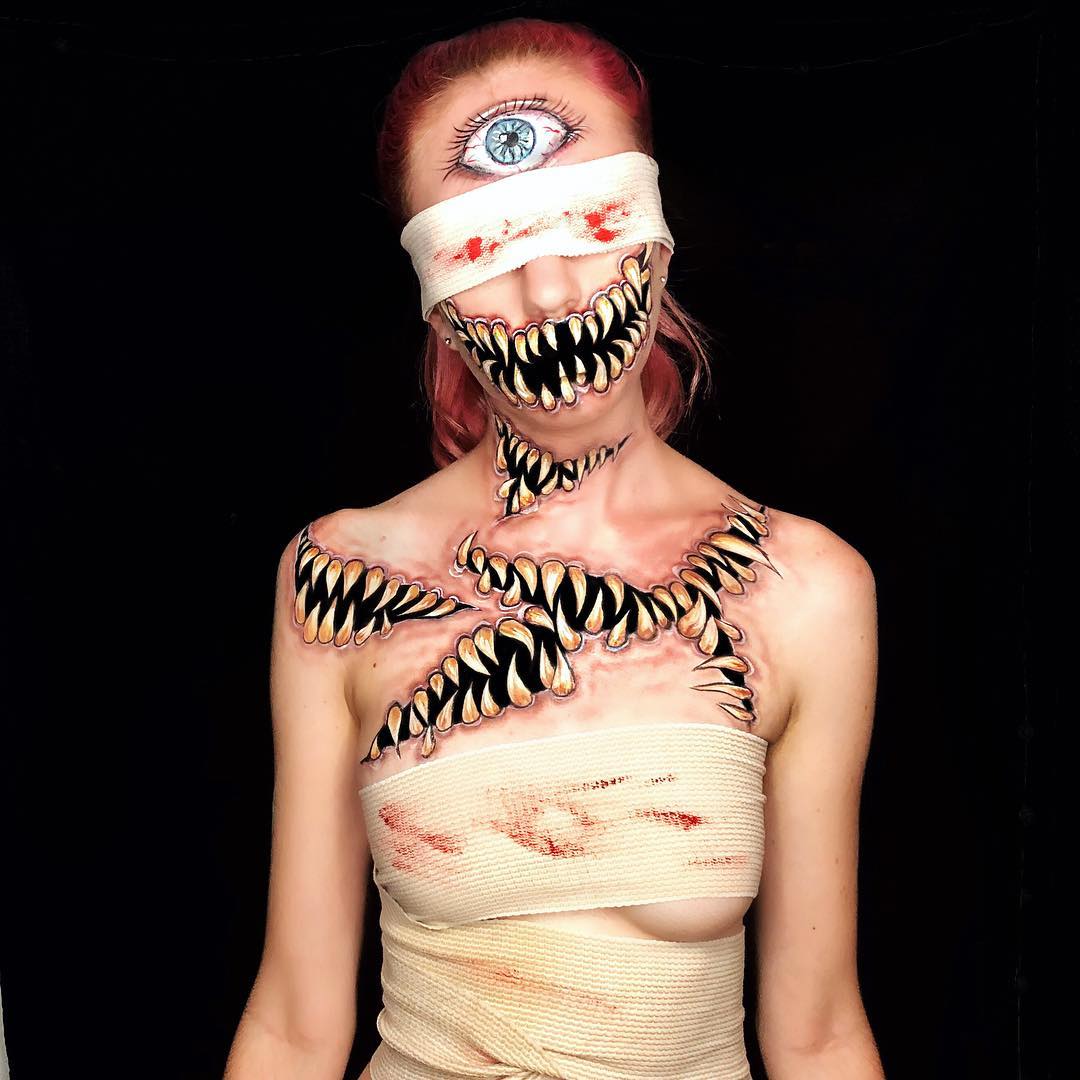 This self-taught makeup artist transforms herself into horror-themed characters and makes them beautiful!