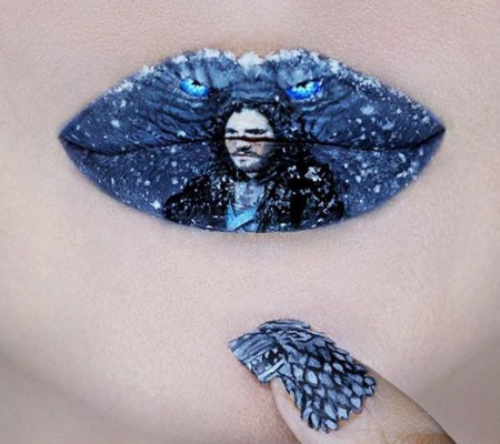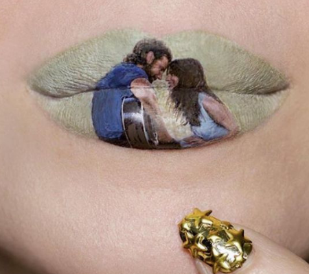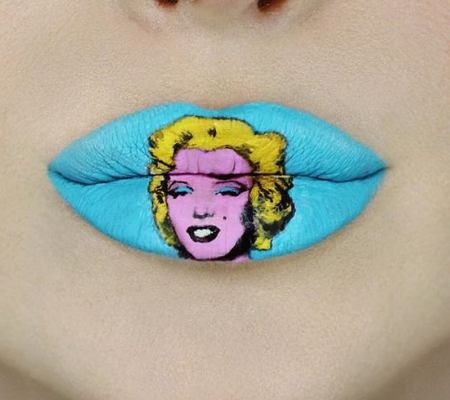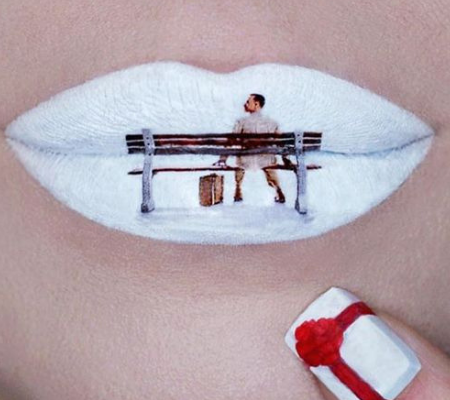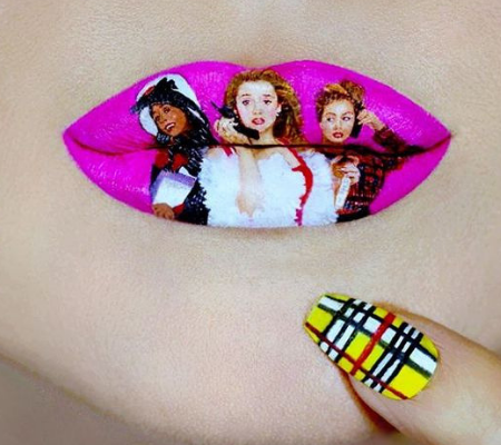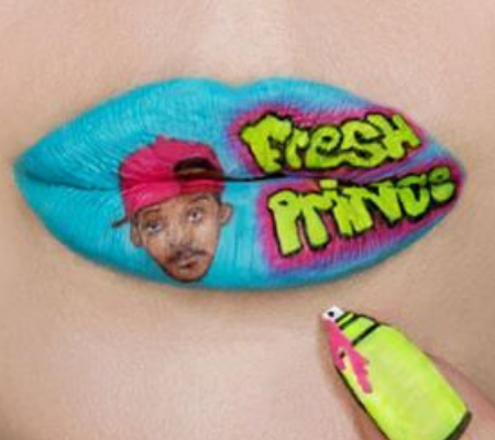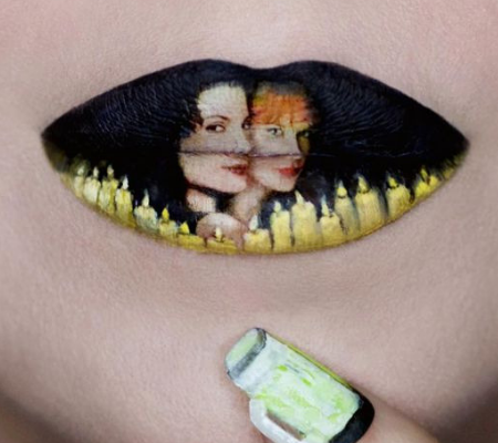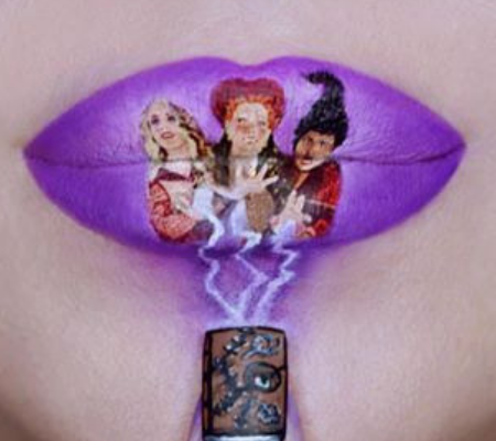 Kelly uses her glamorous pout as a canvas for pop culture art! Some of her lip art classics include movies like Scream, Beetle Juice and the recent Netflix hit Birdbox.