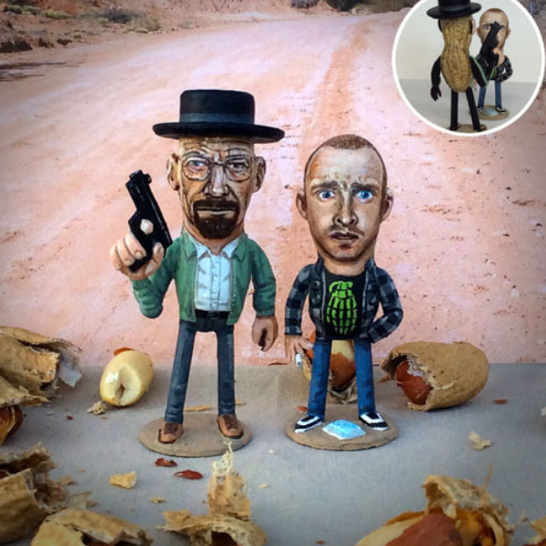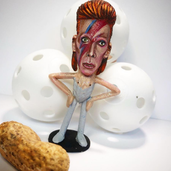 Casino uses the peanut as his main star, but he also uses super Sculpey, magic-sculpt clay, and acrylic paint. Casino has made many celebrities into these iconic mini-masterpieces including Elton John, Bob Marley, Marilyn Monroe and the Game Of Thrones cast!