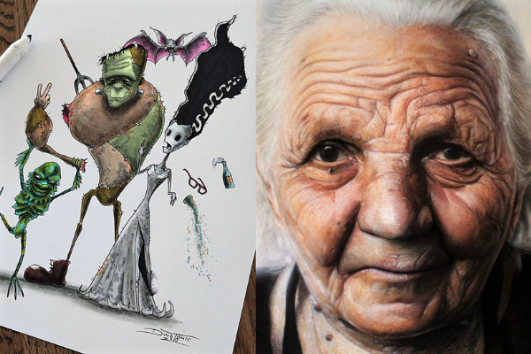 This is one diverse artist with exceptional skills as big as his hand-painted portraits!